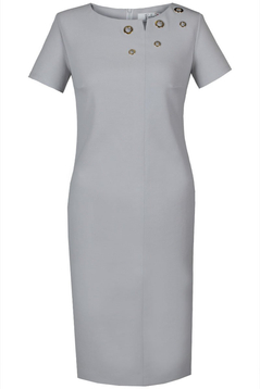Sukienka z okrągłym dekoltem, krótki rękaw, bez podszewki, z tyłu posiada suwak. Bardzo ładnie wykończona z przodu ozdobnymi elementami. Doskonała również na specjalne okazje. Sukienka dostępna w przepięknych pastelowych kolorach. W zestawieniu ze szpilkami stworzysz niebanalną stylizację.