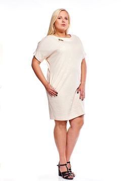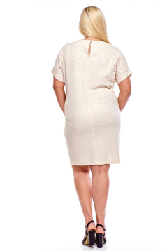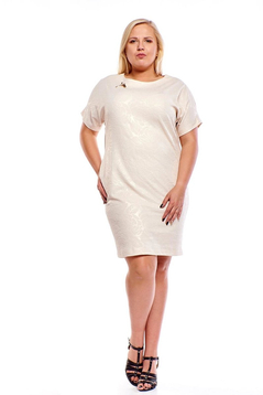 Sukienka FSU1116 BEŻOWY wyciskane kwiaty