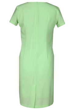 Elegancka sukienka na wyjątkowe okazje. Uszyta z najwyższej jakości cieniutkiej krepy. Miła w dotyku podszewka. Przód sukienki to półokrągły dekolt. Delikatna srebrna blaszka w formie dekoracji. Fantazyjna warstwa materiału doskonale maskuje mankamenty figury. Cięcia francuskie dodatkowo wysmuklają sylwetkę. Tył gładki z suwakiem na plecach i dyskretnym rozporkiem. Długość uniwersalna. Klasyczny ale niebanalny fason sprawia, że sukienka nadaje się na wiele wyjątkowych okazji typu komunia, wesele, przyjęcie.