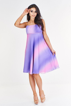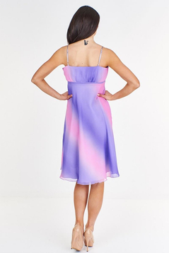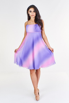 Wizytowa sukienka dostępna w wielu wersjach kolorystycznych. Sukienka na cienkich ramiączkach, dopasowana w biuście, rozkloszowana w talii. Nie prześwituje, ponieważ posiada podszewkę. Na zewnątrz cienki szyfon, który pięknie układa się w tańcu. Do sukienek w kolorze czerni dodatkowo - cienki szal, który idealnie sprawdzi się jako okrycie ramion. Pozostałe nie posiadają szala.  Dedykowana na okazje takie jak: Sylwester, Andrzejki. Polecana dla kobiet w każdym przedziale wiekowym.