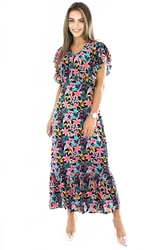 Sukienka FSU1120 CZARNY różowe pastelowe kwiatki