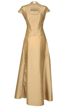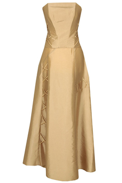 Szukasz wyjątkowej sukni na karnawał, sylwestra, wesele lub szalone stylowe panieńskie? Wyjątkowa i nietuzinkowa długa suknia. Gorsetem podkreślisz piękne ramiona i uwydatnisz biust, wiązaniem z tyłu dobrze go dopasujesz. Materiał- połyskująca tafta, zdobiona krzyżującymi się lamówkami. Dopasowana góra, podkreślona talia, dół rozkloszowany  - klasa i styl. Nie posiada halki. W komplecie bolerko jak zajdzie potrzeba zakryć ramiona. Spraw by ten wieczór był wyjątkowy, a impreza niepowtarzalna. Nie zawsze trafia się nam okazja, by pozwolić sobie na niecodzienny styl i poczuć się jak królowa balu. Idealna kreacja dla pań, które lubią podkreślić swoją osobowość.
