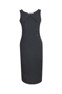 Klasyczna, ołówkowa sukienka. Poszczególne kolory mogą różnić się materiałem. Część sukienek została uszyta z tkaniny, a część z dzianiny. Zaleca się zapytać obsługę sklepu, który kolor z jakiego materiału został uszyty. Dekolt okrągły, podkreślony dwoma zakładkami zachodzącymi na siebie. Bez rękawów. Talia zaakcentowana odcięciem w pasie. Sukienka idealna na kameralne spotkania w gronie rodziny czy znajomych.
