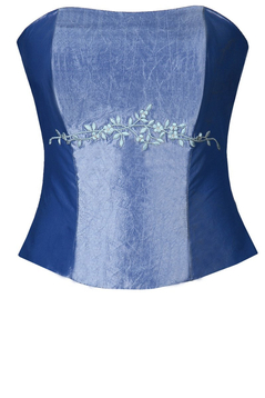 Gorset z fiszbinami wiązany z tyłu, Gorsetem podkreślisz piękne ramiona i uwydatnisz biust, wiązaniem z tyłu dobrze go dopasujesz. Materiał - połyskująca tafta z kwiatowym haftem.  Dopasowana góra, podkreślona talia  to klasa i styl. Gorset uzupełni twoją garderobę, można nosić go zarówno do spodni jak i spódnic. Idealny  dla pań, które lubią podkreślić swoją sylwetkę.