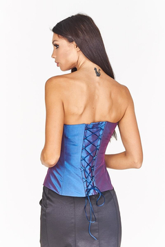 Gorset z fiszbinami wiązany z tyłu, Gorsetem podkreślisz piękne ramiona i uwydatnisz biust, wiązaniem z tyłu dobrze go dopasujesz. Materiał - połyskująca tafta z kwiatowym haftem. Dopasowana góra, podkreślona talia to klasa i styl. Gorset uzupełni twoją garderobę, można nosić go zarówno do spodni jak i spódnic. Idealny dla pań, które lubią podkreślić swoją sylwetkę.