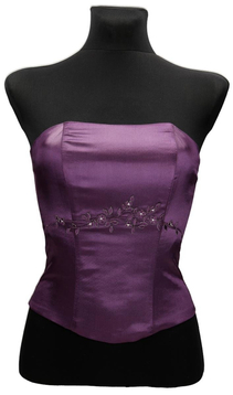 Gorset z fiszbinami wiązany z tyłu, Gorsetem podkreślisz piękne ramiona i uwydatnisz biust, wiązaniem z tyłu dobrze go dopasujesz. Materiał - połyskująca tafta z kwiatowym haftem.  Dopasowana góra, podkreślona talia  to klasa i styl. Gorset uzupełni twoją garderobę, można nosić go zarówno do spodni jak i spódnic.