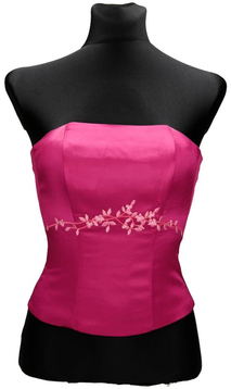 Gorset z fiszbinami wiązany z tyłu, Gorsetem podkreślisz piękne ramiona i uwydatnisz biust, wiązaniem z tyłu dobrze go dopasujesz. Materiał - połyskująca tafta z kwiatowym haftem. Dopasowana góra, podkreślona talia to klasa i styl. Gorset uzupełni twoją garderobę, można nosić go zarówno do spodni jak i spódnic.