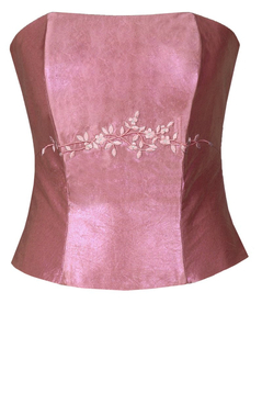 Gorset z fiszbinami wiązany z tyłu, Gorsetem podkreślisz piękne ramiona i uwydatnisz biust, wiązaniem z tyłu dobrze go dopasujesz. Materiał - połyskująca tafta z kwiatowym haftem.  Dopasowana góra, podkreślona talia  to klasa i styl. Gorset uzupełni twoją garderobę, można nosić go zarówno do spodni jak i spódnic. Idealny  dla pań, które lubią podkreślić swoją sylwetkę.