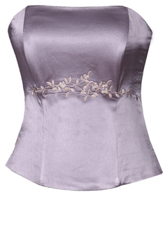 Gorset z fiszbinami wiązany z tyłu, Gorsetem podkreślisz piękne ramiona i uwydatnisz biust, wiązaniem z tyłu dobrze go dopasujesz. Materiał - połyskująca tafta z kwiatowym haftem.  Dopasowana góra, podkreślona talia  to klasa i styl. Gorset uzupełni twoją garderobę, można nosić go zarówno do spodni jak i spódnic.