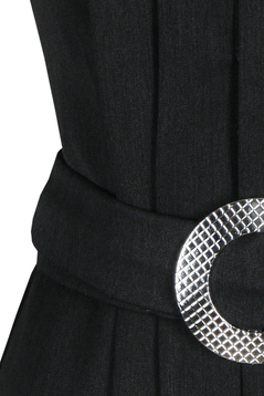 Sukienka idealnie podkreśli linię Twojej talii. Świetnie skrojona i dopasowana podkreśli Twoją kobiecość i wdzięk. Dekolt wycięty w kształcie kwadratu/prostokąta, jego geometryczny krój idealnie stylizuje się z pionowymi zakładkami. Całość wygląda szykownie i elegancko. Charakteru i dopełnienia nadaje pasek z okrągłą klamerką. Sukienka ta nie wymaga wzbogacenia jej o kolejne dodatki. Wystarczy drobna, delikatna biżuteria. Długość midi sprawdzi się zawsze, niezależnie od okazji, do pracy, na spotkania ze znajomymi, wesela, przyjęcia koktajlowe czy inne uroczystości.