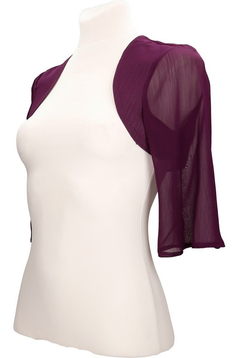 Bolerko to krótka kamizelka z rękawkami, sięgająca do połowy piersi. Przeznaczona do noszenia na bluzce lub gorseciku. Bardzo dobrze sprawdzi się również w zestawie z sukienką i szpilkami jako uzupełnienie stylizacji.
