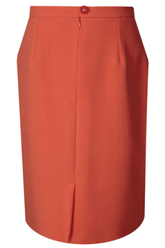 Klasyczna, ołówkowa spódnica. W tali pasek o szerokości 3 cm, zapinany z tyłu na 1 guzik. Suwak kryty. Na dole rozporek zakładany, ułatwiający chodzenie. Uszyta ze stabilnej tkaniny. Jest podszewka. Dół podszyty ściegiem krytym. Bardzo uniwersalna spódnica, w zależności od pozostałych części garderoby, może mieć szerokie zastosowanie, np. w połączeniu z białą bluzką tworzy strój wizytowy, w zestawieniu z gładkim golfem – odpowiedni ubiór do pracy.