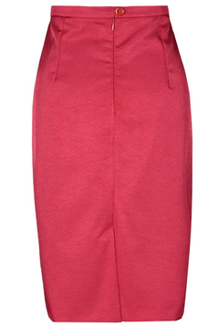 Klasyczna, ołówkowa spódnica. W tali pasek o szerokości 3 cm, zapinany z tyłu na 1 guzik. Suwak kryty. Na dole rozporek zakładany, ułatwiający chodzenie. Uszyta ze stabilnej tkaniny. Jest podszewka. Dół podszyty ściegiem krytym. Bardzo uniwersalna spódnica, w zależności od pozostałych części garderoby, może mieć szerokie zastosowanie, np. w połączeniu z białą bluzką tworzy strój wizytowy, w zestawieniu z gładkim golfem – odpowiedni ubiór do pracy.