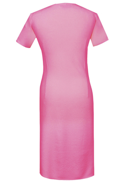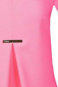 Lekko rozkloszowana, luźna sukienka, pozwoli zatuszować niedoskonałości sylwetki. Uszyta z tkaniny nie ulegającej gnieceniu i mechaceniu. Dekolt okrągły. Na środku przodu jest głęboka kontrafałda, zaakcentowana złotą ozdobą z logo firmy. Rękaw krótki. Bez podszewki. Bez zapięcia. Sukienkę polecamy na sezon wiosenno - letni, kobietom w różnym wieku, na wszelkie spotkania rodzinne i służbowe.