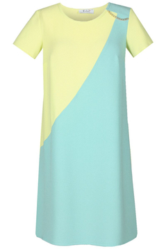 Sukienka w kształcie trapezu. Dopasowana jedynie w biuście, natomiast w pasie i biodrach luźna. Dekolt okrągły. Rękaw krótki. Przód oryginalnie zaprojektowany, z boku przy ramieniu ozdobny łańcuszek. Sukienka została uszyta z najwyższej jakości tkaniny. Jest bardzo przyjemna w dotyku. Nie ulega mechaceniu. Bez podszewki. Sukienka powstała z myślą o dziewczynach i kobietach w różnym wieku. Przeznaczona do noszenia na co dzień. Jeśli chcesz czuć się komfortowo i wyglądać elegancko, to ta sukienka jest właśnie dla Ciebie.