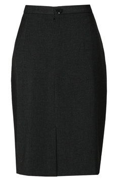 Klasyczna, ołówkowa spódnica. W tali pasek o szerokości 3 cm, zapinany z tyłu na 1 guzik. Suwak kryty. Na dole rozporek zakładany, ułatwiający chodzenie. Uszyta ze stabilnej tkaniny. Jest podszewka. Dół podszyty ściegiem krytym. Bardzo uniwersalna spódnica, w zależności od pozostałych części garderoby, może mieć szerokie zastosowanie, np. w połączeniu z białą bluzką tworzy strój wizytowy, w zestawieniu z gładkim golfem – odpowiedni ubiór do pracy.