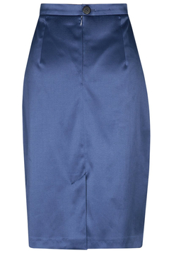 Klasyczna, ołówkowa spódnica. W tali pasek o szerokości 3 cm, zapinany z tyłu na 1 guzik. Suwak kryty. Na dole rozporek zakładany, ułatwiający chodzenie. Uszyta ze stabilnej tkaniny. Jest podszewka. Dół podszyty ściegiem krytym. Bardzo uniwersalna spódnica, w zależności od pozostałych części garderoby, może mieć szerokie zastosowanie, np. w połączeniu z białą bluzką tworzy strój wizytowy, w zestawieniu z gładkim golfem – odpowiedni ubiór do pracy.