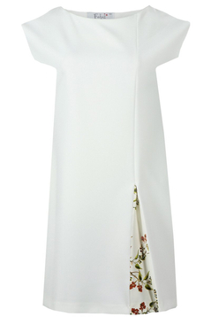 Asymetryczna, luźna sukienka, pozwala zatuszować niedoskonałości sylwetki. Uszyta z tkaniny nie ulegającej gnieceniu i mechaceniu. Dekolt okrągły. Na przodzie po lewej stronie, oraz na ramionach są kontrafałdy, podkreślone wzorzystymi wstawkami. Bez podszewki. Bez zapięcia. Dół wykończony ściegiem krytym. Sukieneczka idealna dla dziewczyn i kobiet w różnym wieku. Odpowiednia na co dzień, ale przy dobraniu odpowiednich dodatków sprawdzi się również na uroczystych spotkaniach.