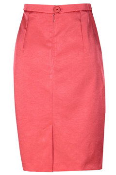 Klasyczna, ołówkowa spódnica. W tali pasek o szerokości 3 cm, zapinany z tyłu na 1 guzik. Suwak kryty. Na dole rozporek zakładany, ułatwiający chodzenie. Uszyta ze stabilnej tkaniny. Jest podszewka. Dół podszyty ściegiem krytym. Bardzo uniwersalna spódnica, w zależności od pozostałych części garderoby, może mieć szerokie zastosowanie, np. w połączeniu z białą bluzką tworzy strój wizytowy, w zestawieniu z gładkim golfem – odpowiedni ubiór do pracy.