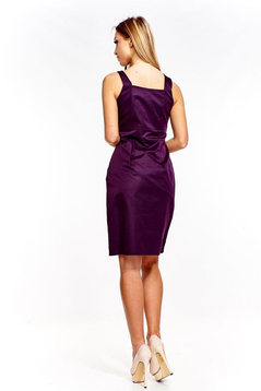 Dopasowana sukienka. Dekolt sercowe karo. Ramiączka szerokie - 5 cm. Bez rękawa. Odcięcie w talii, podkreślone paskiem. Karczek przodu oraz dół zakładane kopertowo. Suwak kryty w lewym boku. Sukienka uszyta z tkaniny delikatnie elastycznej. Nie ulega nadmiernemu gnieceniu i mechaceniu. Jest podszewka. Dół wykończony ściegiem krytym. Sukienkę polecamy kobietom młodym, chcącym wyglądać modnie i elegancko.