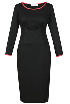 Klasyczna, dopasowana sukienka. Dekolt okrągły. Długi rękaw, Ocięcie w talii, podkreślone paskiem. Z boku suwak kryty, oraz na dole rozporek zakładany. Sukienka została uszyta z elastycznej tkaniny. Miła w dotyku, nie ulega mechaceniu i nadmiernemu gnieceniu. Bez podszewki. Sukienka powstała z myślą o kobietach dojrzałych, lubiących wyglądać modnie i elegancko przy każdej okazji.