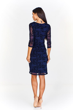 Sukienka jest dwuwarstwowa, wierzch to koronka na elastycznym tiulu. Spód został uszyty z cienkiej, elastycznej dzianiny. Wszystkie materiały użyte do produkcji, nie ulegają gnieceniu i mechaceniu. Sukienka subtelnie opina sylwetkę, podkreślając kobiece kształty. W czerni sprawdzi się jako niezastąpiona mała czarna. Dekolt serek. Rękaw 3/4. Bez zapięcia. Sukienka jest bardzo uniwersalna, można ją włożyć na wesele, studniówkę i inne imprezy okolicznościowe. Polecamy kobietom w każdym wieku.