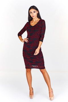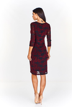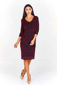 Sukienka jest dwuwarstwowa, wierzch to koronka na elastycznym tiulu. Spód został uszyty z cienkiej, elastycznej dzianiny. Wszystkie materiały użyte do produkcji, nie ulegają gnieceniu i mechaceniu. Sukienka subtelnie opina sylwetkę, podkreślając kobiece kształty. W czerni sprawdzi się jako niezastąpiona mała czarna. Dekolt serek. Rękaw 3/4. Bez zapięcia. Sukienka jest bardzo uniwersalna, można ją włożyć na wesele, studniówkę i inne imprezy okolicznościowe. Polecamy kobietom w każdym wieku.