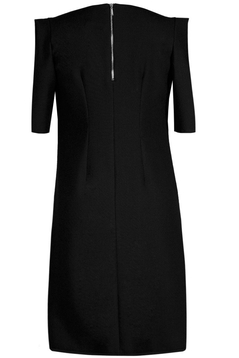Codzienna sukienka. Fason trapez. Dopasowana jest jedynie w biuście, w pasie i w biodrach luźna. Dekolt okrągły. Poniżej ozdobna czarna kokardka z firmową przywieszką. Rękaw sięgający do łokcia, z oryginalną zakładką przy ramieniu. Zapinana z tyłu na ozdobny metalowy suwak. Tył prosty. Jest podszewka. Dół wykończony czarną lamówką. Sukienkę polecamy kobietom w każdym wieku, idealna na co dzień do pracy, jak również na prywatne spotkania. Sukienkę powinny nosić kobiety o wąskich ramionach i szerokich biodrach.