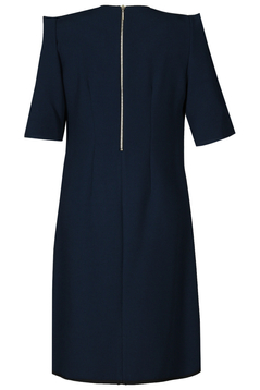 Codzienna sukienka. Fason trapez. Dopasowana jest jedynie w biuście, w pasie i w biodrach luźna. Dekolt okrągły. Poniżej ozdobna czarna kokardka z firmową przywieszką. Rękaw sięgający do łokcia, z oryginalną zakładką przy ramieniu. Zapinana z tyłu na ozdobny metalowy suwak. Tył prosty. Jest podszewka. Dół wykończony czarną lamówką. Sukienkę polecamy kobietom w każdym wieku, idealna na co dzień do pracy, jak również na prywatne spotkania. Sukienkę powinny nosić kobiety o wąskich ramionach i szerokich biodrach.