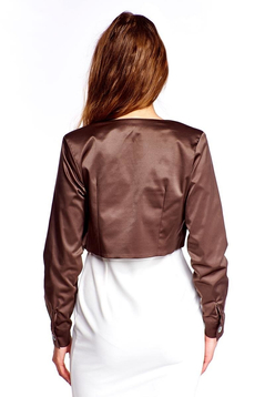 Krótki, elegancki żakiet, który każda kobieta powinna mieć w swojej szafie. Połyskliwa satynobawełna dodatkowo dodaje mu szyku. Z jego pomocą stworzysz zarówno bardzo grzeczny look do pracy jak i wystrzałową kreację na imprezę czy spotkanie z przyjaciółmi. Klasyczna koszula i ołówkowa spódnica połączone z tym żakietem to strój na najbardziej wymagające oficjalne spotkania, ale wystarczy spódnicę zamienić na jeansy i mamy zestaw na randkę czy ploteczki z koleżanką. Z tym żakietem stworzysz niebanalne zestawy do pracy i po pracy.