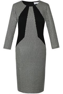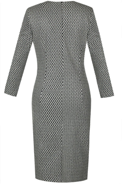 Prosta jesienna sukienka. Rękaw ¾. Dekolt okrągły. Przód fantazyjne pocięty, zaakcentowany kontrastową wstawką. Na przodzie w szwach, ukryte zostały kieszenie. Sukienka uszyta z bardzo miłej w dotyku, elastycznej dzianiny. Skład surowcowy: 64% poliamid, 31% wiskoza, 5% elastan. Materiał posiada delikatną strukturę. Z tyłu suwak kryty, na dole rozporek ułatwiający swobodne chodzenie. Bez podszewki. Sukieneczkę polecamy kobietom w każdym wieku, na co dzień do pracy biurowej, lub na kameralne spotkania w gronie rodziny czy przyjaciół.