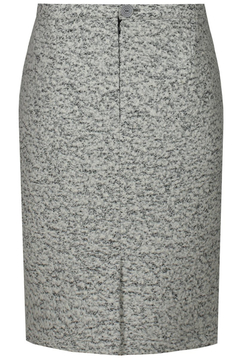 Klasyczna, ołówkowa spódnica. W tali pasek o szerokości 3 cm, zapinany z tyłu na 1 guzik. Suwak kryty. Na dole rozporek zakładany, ułatwiający chodzenie. Uszyta ze stabilnej tkaniny. Jest podszewka. Dół podszyty ściegiem krytym. Bardzo uniwersalna spódnica, w zależności od pozostałych części garderoby, może mieć szerokie zastosowanie, np. w połączeniu z białą bluzką tworzy strój wizytowy, w zestawieniu z gładkim golfem – odpowiedni ubiór do pracy.
