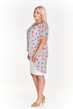 Sukienka FSU620 EKRI + AMARANTOWY kokarda