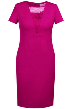 Elegancka, dopasowana sukienka z głębokim dekoltem z siateczki i koronki, uwydatnia atuty, ale również ukrywa mankamenty. Sukienka na wysokość kolan, suwak z tyłu, krótki rękaw, taliowana. Idealna na specjalne i wyjątkowe okazje. Dostępna w kilku wersjach kolorystycznych. Wykonana z materiału, który nie prześwituje, nie gniecie się i nie mechaci. Polecana dla kobiet, które chcą wyglądać oryginalnie i niebanalnie. Ze szpilkami i marynarką stworzysz unikalną stylizację.