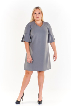 Sukienka z rozkloszowanym rękawem, układająca się w linię trapezu to propozycja dla pań, które lubią stonowane, klasyczne barwy, ale cenią sobie też nieszablonowe podejście do mody. Falbanka, jako zakończenie krótkiego rękawka, jest bardzo dziewczęca, ale nie infantylna, subtelnie odwróci uwagę od mocniej zbudowanych rąk. Kształt sukienki, układający się w linię A, zamaskuje zbyt obfite biodra, a paniom o figurze jabłka, optycznie je "stworzy". Dość luźny fason tej propozycji pozwoli czuć się i stylowo, i wygodnie. Uwagę zwraca tu też dekolt w literę V, który ładnie wydłuża szyję. Długość do kolana zapewni totalny komfort użytkowania i zimą w zestawieniu z płaszczem i na biznesowej kolacji w letniej scenerii.