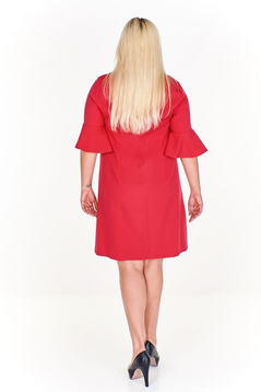 Sukienka z rozkloszowanym rękawem, układająca się w linię trapezu to propozycja dla pań, które lubią stonowane, klasyczne barwy, ale cenią sobie też nieszablonowe podejście do mody. Falbanka, jako zakończenie krótkiego rękawka, jest bardzo dziewczęca, ale nie infantylna, subtelnie odwróci uwagę od mocniej zbudowanych rąk. Kształt sukienki, układający się w linię A, zamaskuje zbyt obfite biodra, a paniom o figurze jabłka, optycznie je "stworzy". Dość luźny fason tej propozycji pozwoli czuć się i stylowo, i wygodnie. Uwagę zwraca tu też dekolt w literę V, który ładnie wydłuża szyję. Długość do kolana zapewni totalny komfort użytkowania i zimą w zestawieniu z płaszczem i na biznesowej kolacji w letniej scenerii.