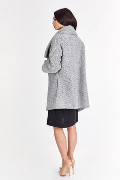 Przepiękna kurtka z asymetrycznym zapięciem. Uszyta z niezwykle ciepłej i delikatnej w dotyku tkaniny. Kurtka jest bardzo lekka, celowo nie zastosowano podszewki, aby można ją było bardziej wykorzystać. Przy temperaturach powyżej zera, jak i drobnych przymrozkach kurteczkę można nosić jesienią i wiosną na zewnątrz, natomiast zimą może zastąpić gruby sweter, w przypadku osób wyjątkowo lubiących ciepło. Jest ona bardzo funkcjonalna, do wykorzystania przez większą część roku. Fason trapez, podkreśla biust, tuszuje brzuszek i to co zwykle kobiety mają do ukrycia. Dół przodu wyraźnie wydłużony, co niewątpliwe wysmukla sylwetkę. Modny, czarny, metalowy suwak. Kołnierz szalowy, pozwalający na dowolne, fantazyjne ułożenie. Funkcjonalne kieszenie wszyte na szwach bocznych. Kurtka powstała z myślą o kobietach i dziewczynach w różnym wieku. Stanowi doskonałe uzupełnienie wszelkich codziennych stylizacji.