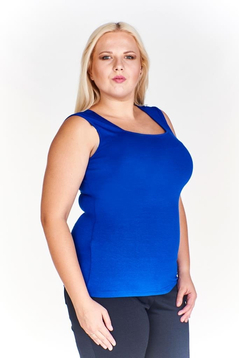 Prosta bluzka, uszyta z bardzo elastycznej dzianiny. Dekolt karo, z przodu wykończony obłożeniem, z tyłu podwinięty. Bez rękawa, pachy wykończone lamówką. Idealna na upalne lato. Przeznaczona dla wszystkich dziewczyn i kobiet, bez względu na wiek. Doskonale komponuje się ze wszystkimi częściami garderoby.