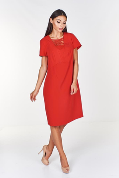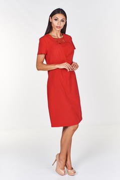 Elegancka, dopasowana sukienka z głębokim dekoltem z siateczki i koronki, uwydatnia atuty, ale również ukrywa mankamenty. Sukienka na wysokość kolan, suwak z tyłu, krótki rękaw, taliowana. Idealna na specjalne i wyjątkowe okazje. Dostępna w kilku wersjach kolorystycznych. Wykonana z materiału, który nie prześwituje, nie gniecie się i nie mechaci. Polecana dla kobiet, które chcą wyglądać oryginalnie i niebanalnie. Ze szpilkami i marynarką stworzysz unikalną stylizację.